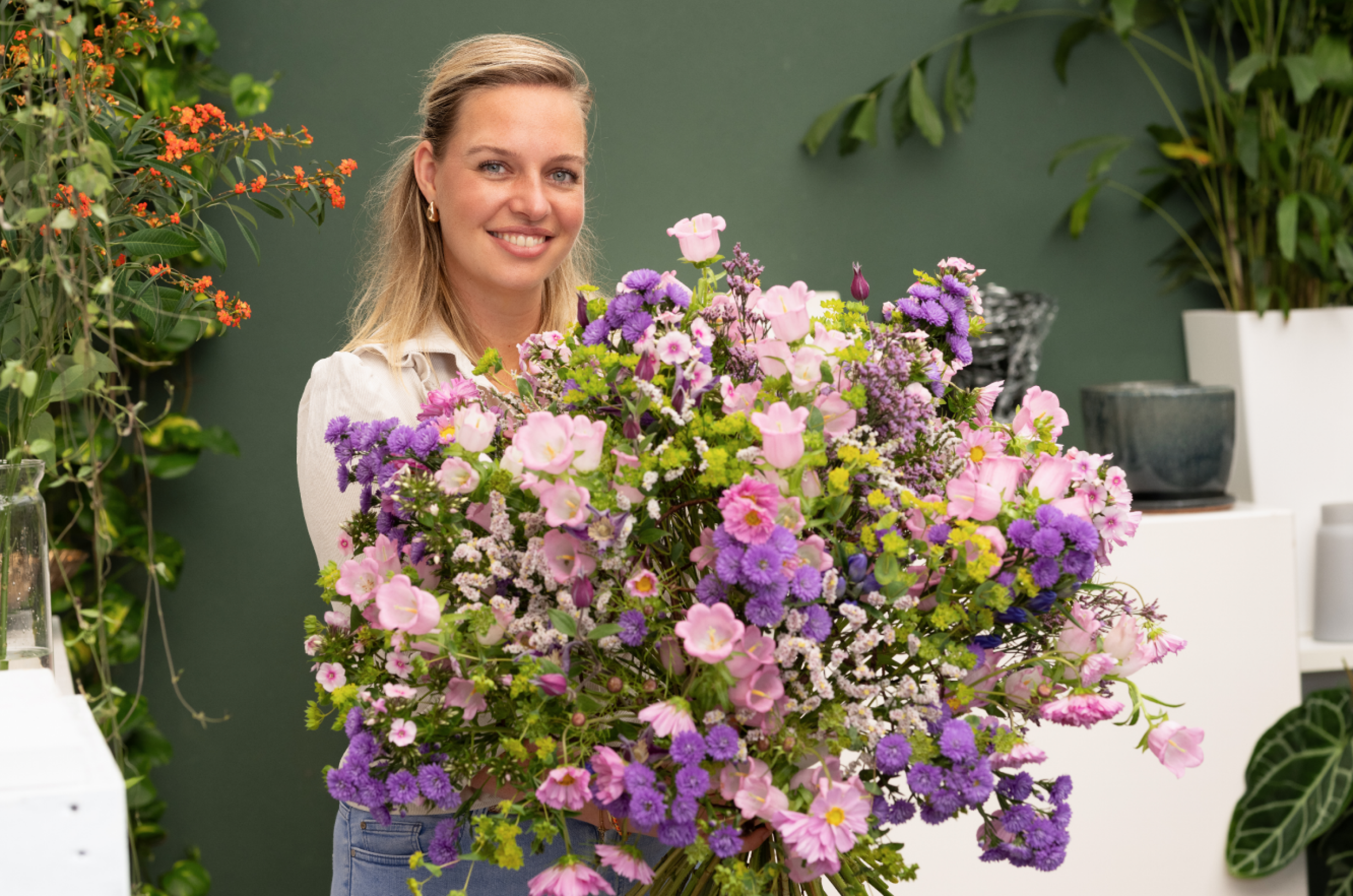 Franka Roenhorst (34) od 2019 roku jest współwłaścicielką sklepu florystycznego Hansa Zijlstry w Groningen. Od stycznia 2024 roku jest mistrzynią Holandii w sztuce florystycznej. Jakie akcesoria wykorzystuje Franka, by podkreślić światowy charakter kompozycji?