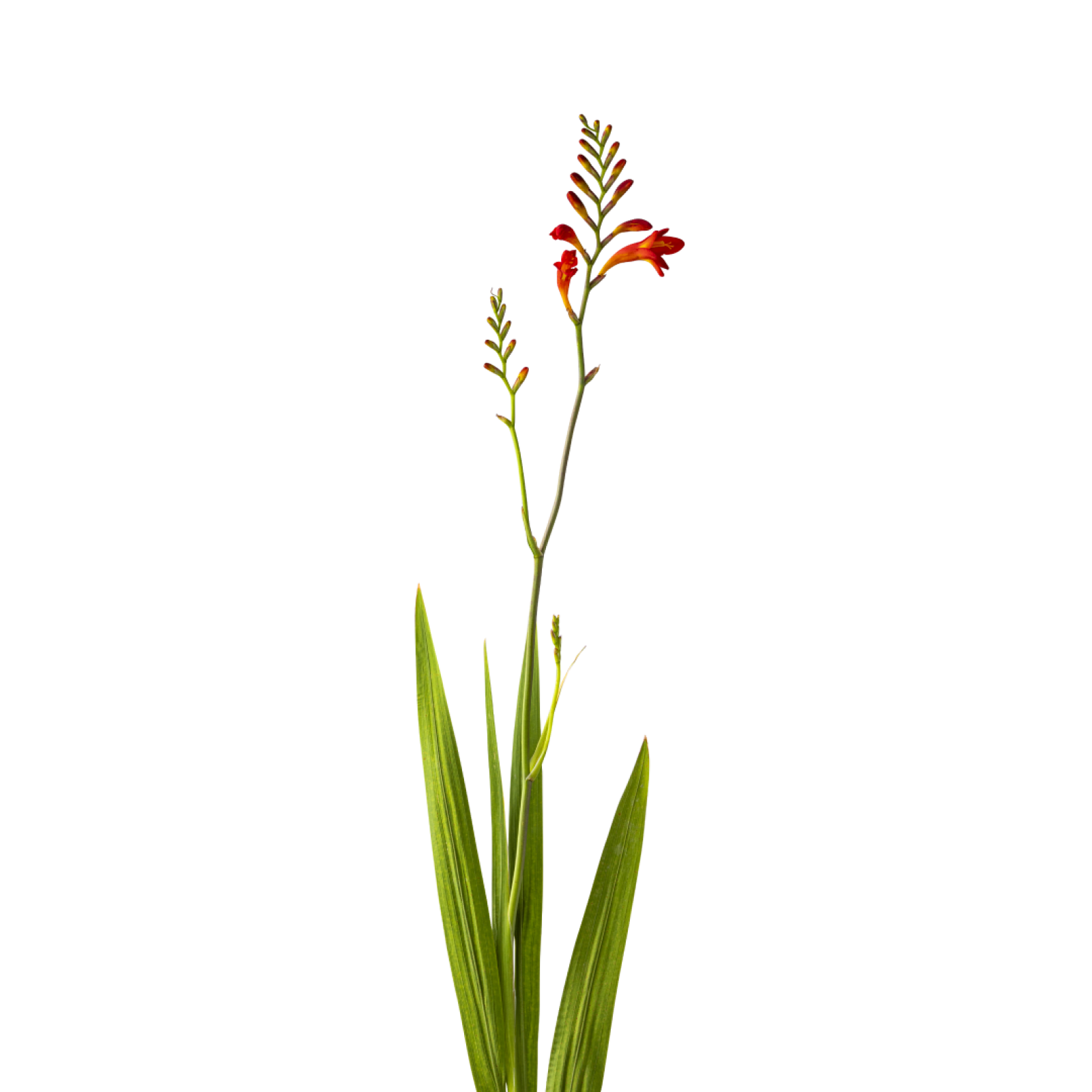 Krokosmia jest znana ze swoich intensywnie pomarańczowych i czerwonych kwiatów.