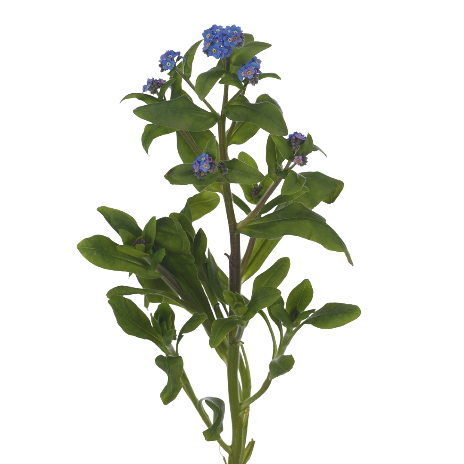 - Stylowe aplikacjeMyosotis ma piękne małe niebieskie i jasnoniebieskie kwiaty rosnące w gronach na rozgałęzionej łodydze.