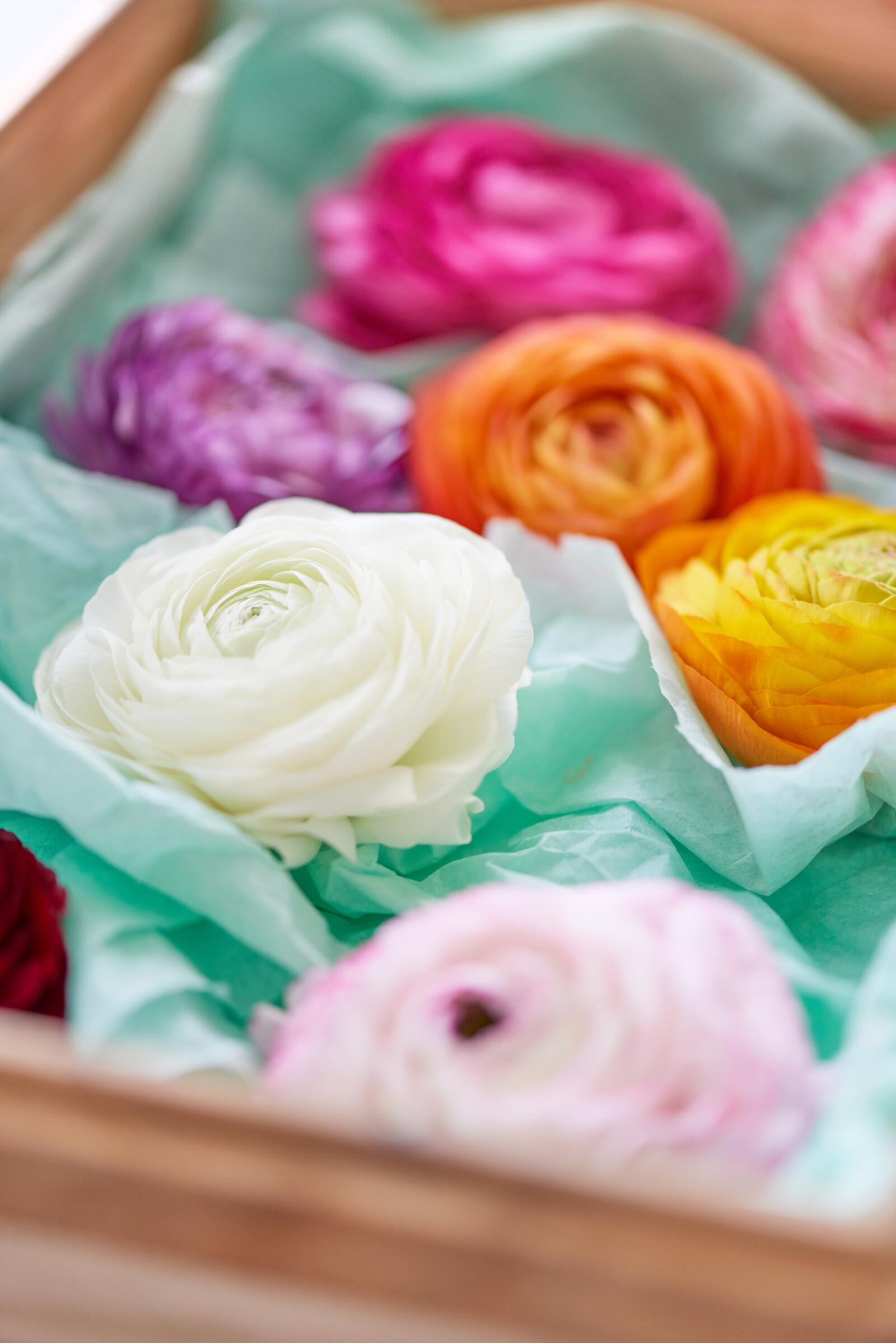 Kolory Ranunculus są bardzo zróżnicowane. Od żywych odcieni po delikatne pastele, każdy płatek ma intensywny, niepowtarzalny kolor.